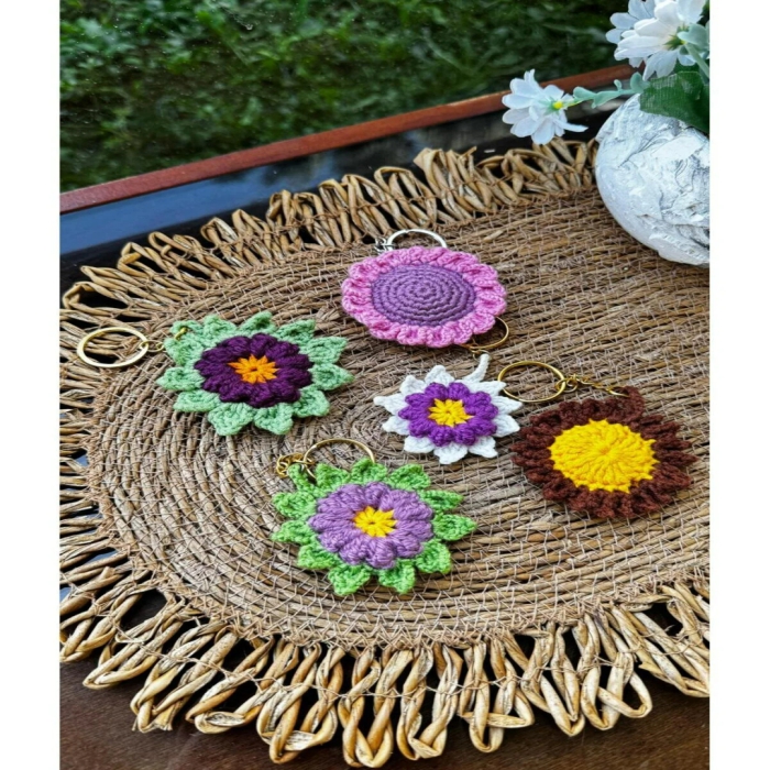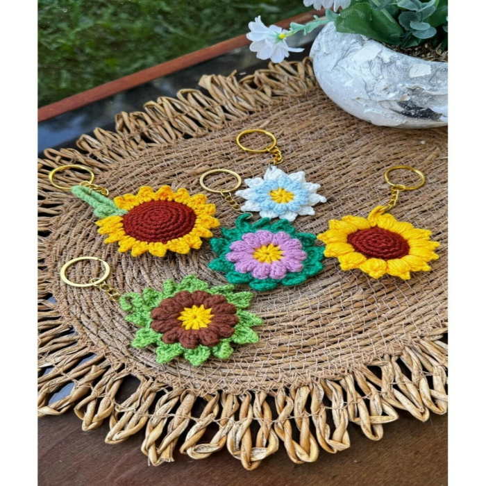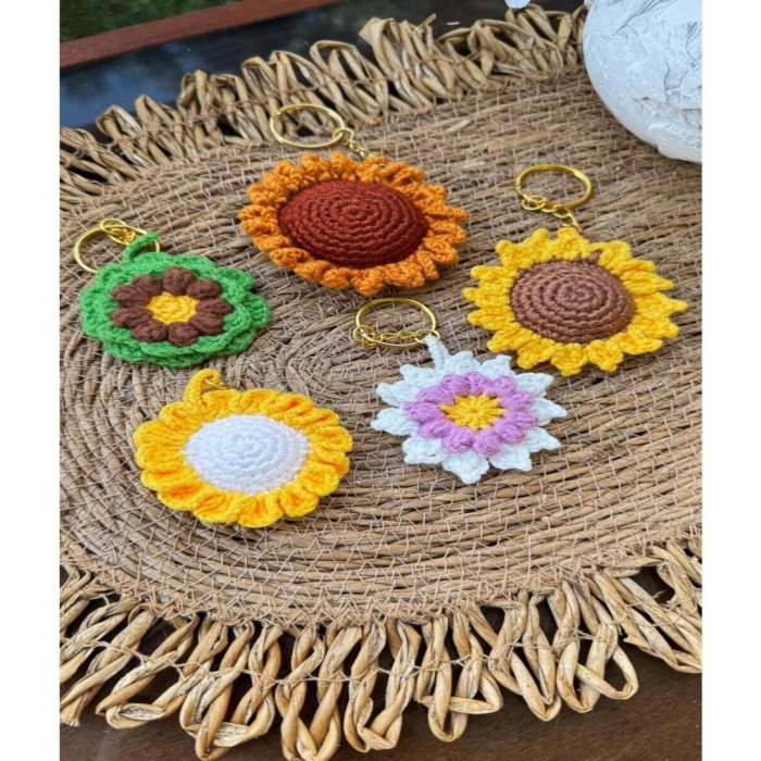 5 Adet El Örgüsü Ayçiçeği Anahtarlık Seti