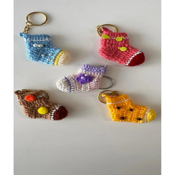 5 Adet El Örgüsü Çorap Anahtarlık Seti