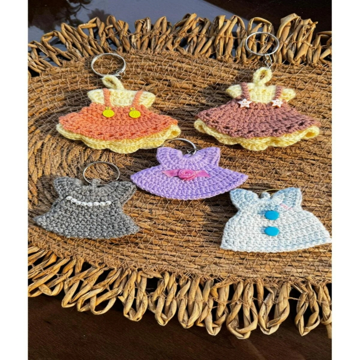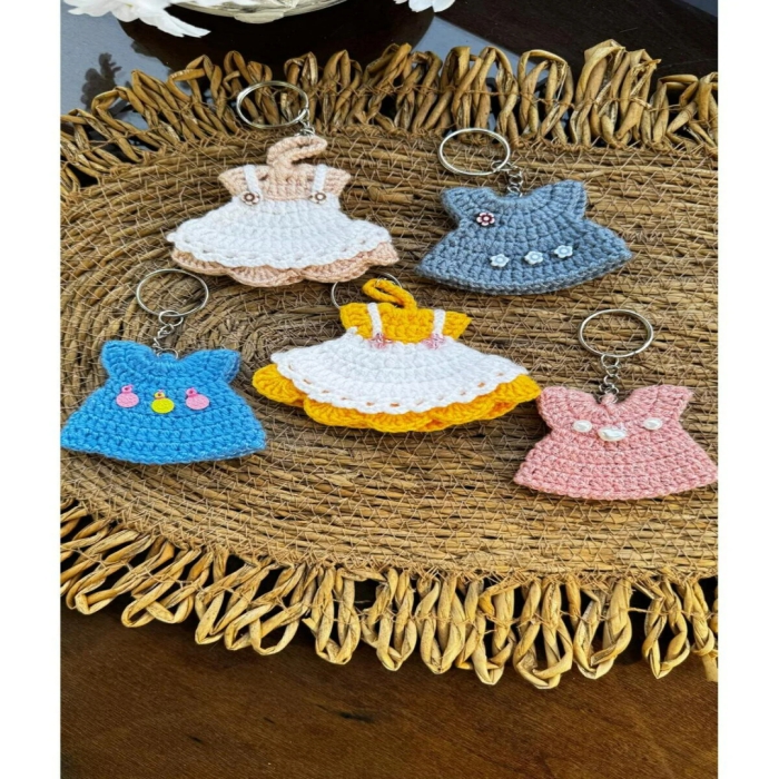 5 Adet El Örgüsü Elbise Anahtarlık Seti