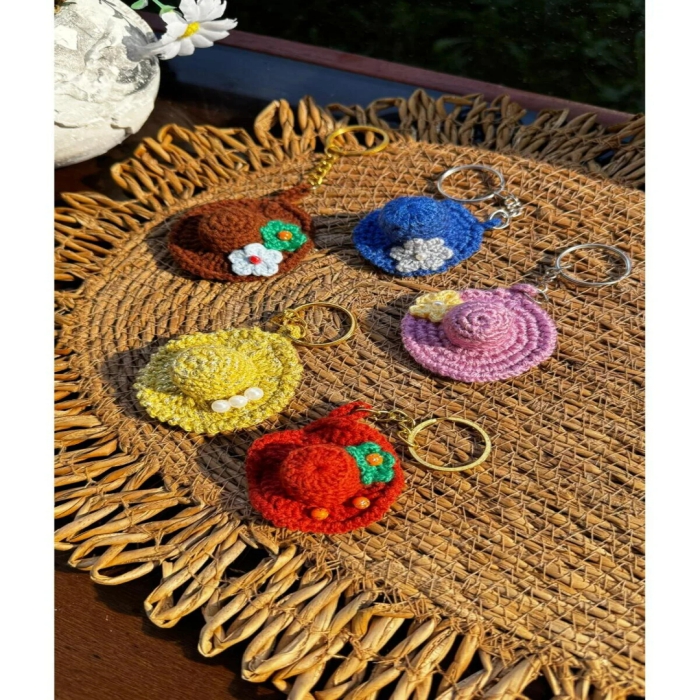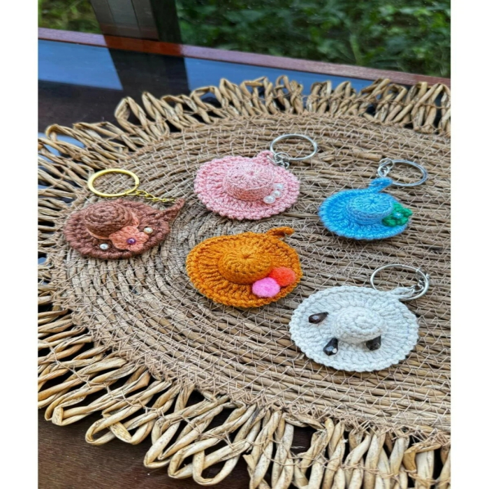 5 Adet El Örgüsü Renkli Şapka Anahtarlık