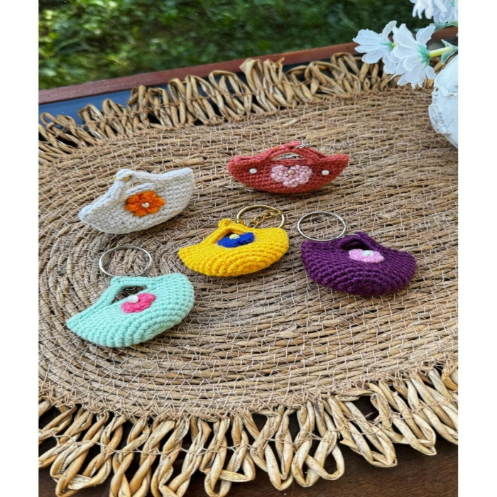 5 adet el örgüsü renkli çan anahtarlık seti...