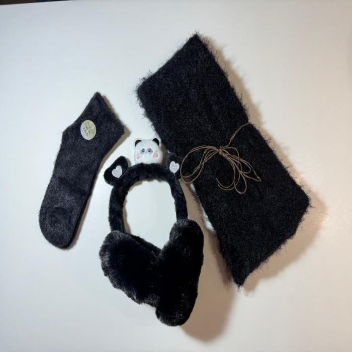 El Örgüsü Atkı, Çorap ve Kulaklık Hediye Seti Siyah