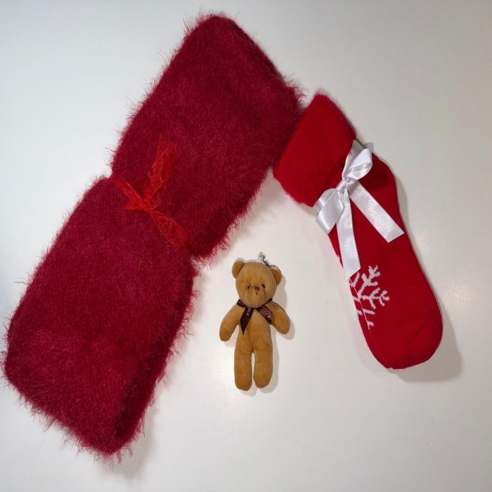 Özel Dekoratif Kutuda Atkı & Çorap ve Ayıcık