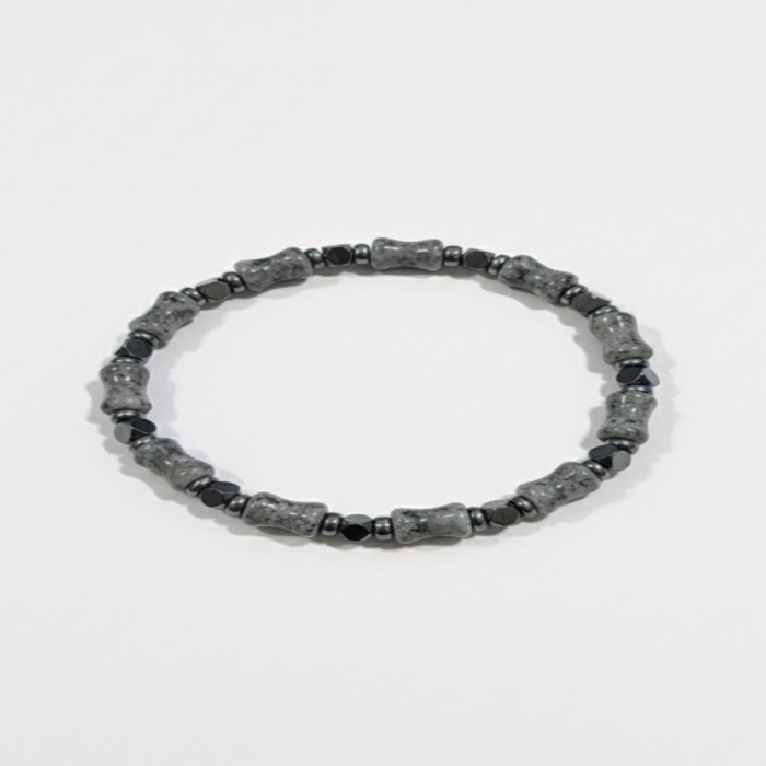 Gri Akik ve Hematit Taşlı Silindir Kesim Doğal Taş Bileklik