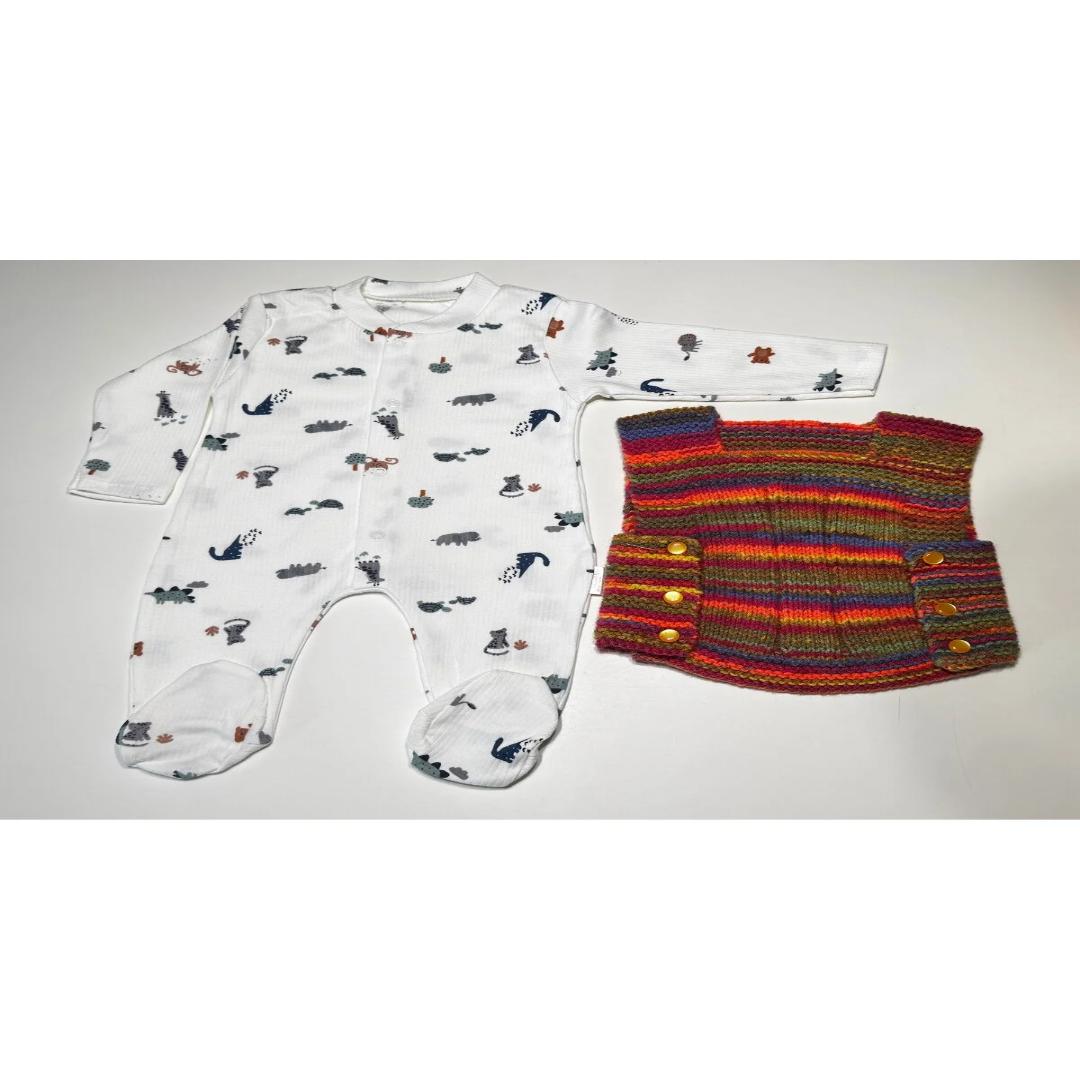 El örgüsü kırçıllı yelek ile tulum kombinasyonu, bebeğinizin şıklığını tamamlar.