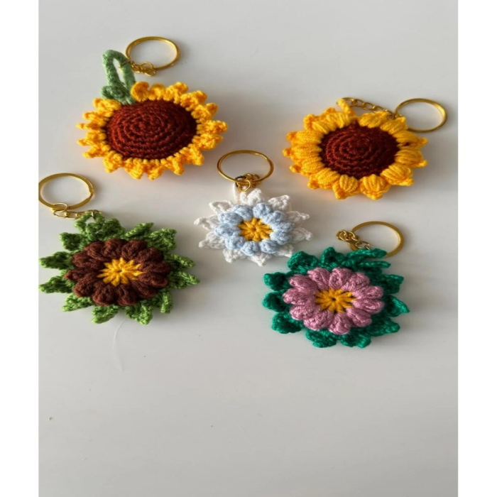 5 adet  El Örgüsü Ayçiçeği Tasarım anahtarlık seti,