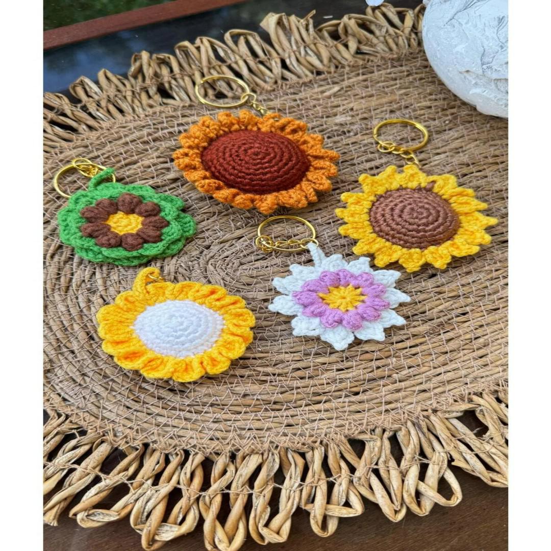 5 adet  El Örgüsü Ayçiçeği Tasarım anahtarlık seti,