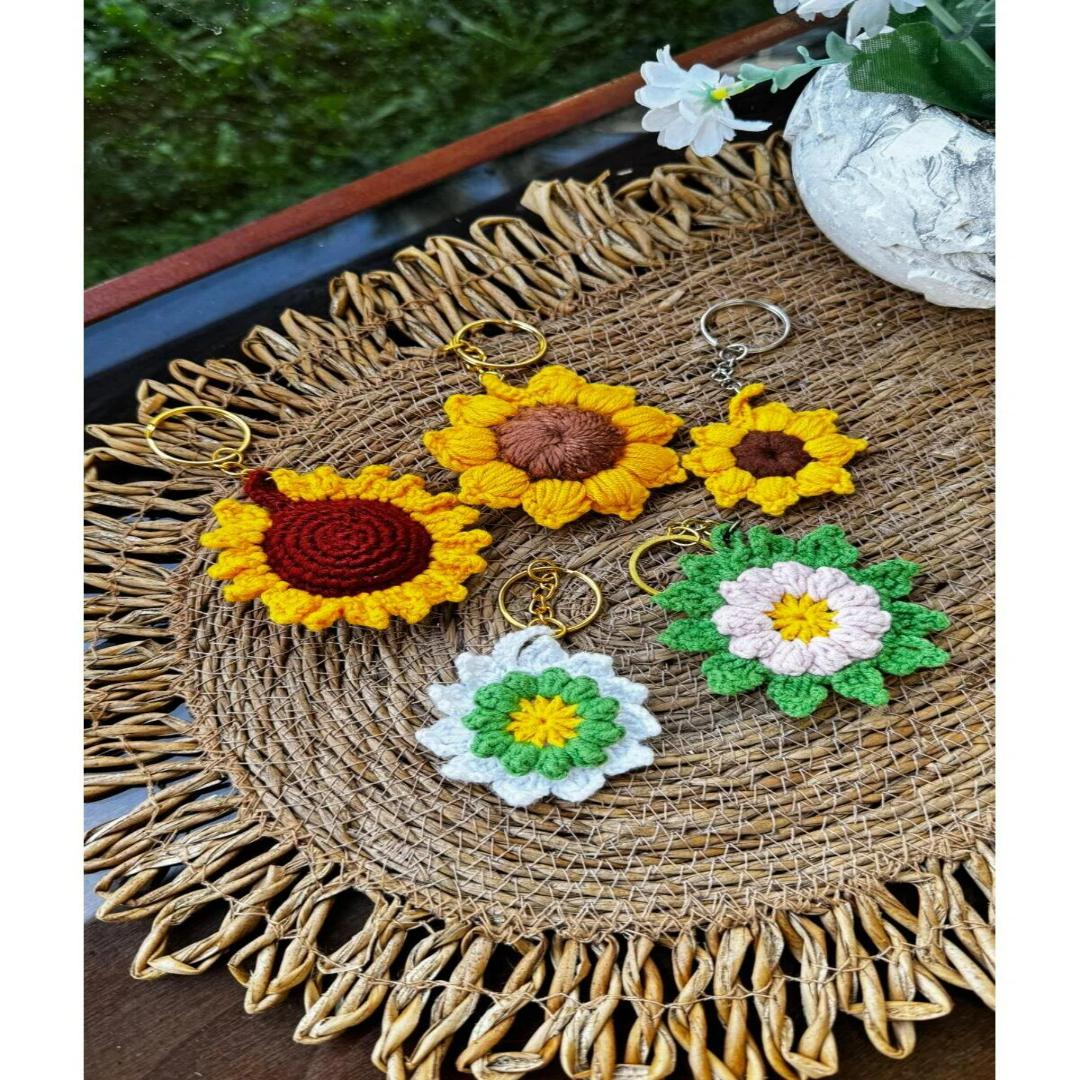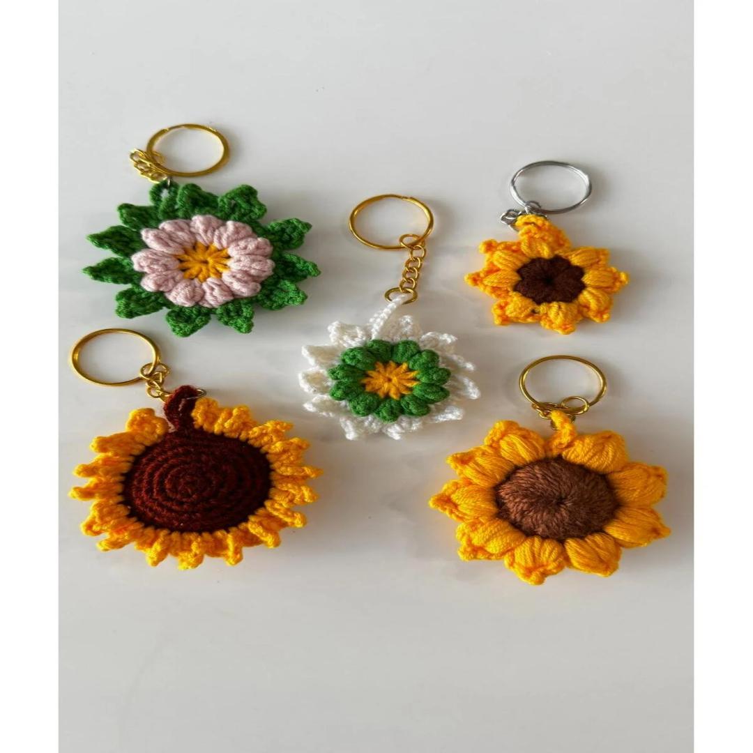 5 adet  El Örgüsü Ayçiçeği Tasarım anahtarlık seti,