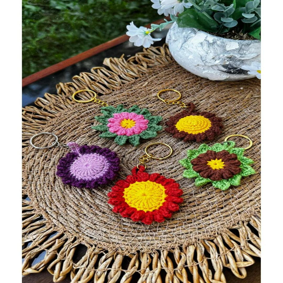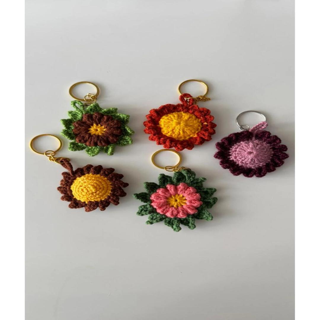 5 adet  El Örgüsü Ayçiçeği Tasarım anahtarlık seti,