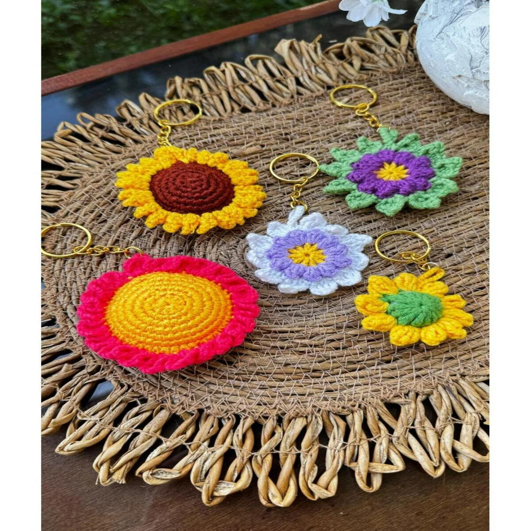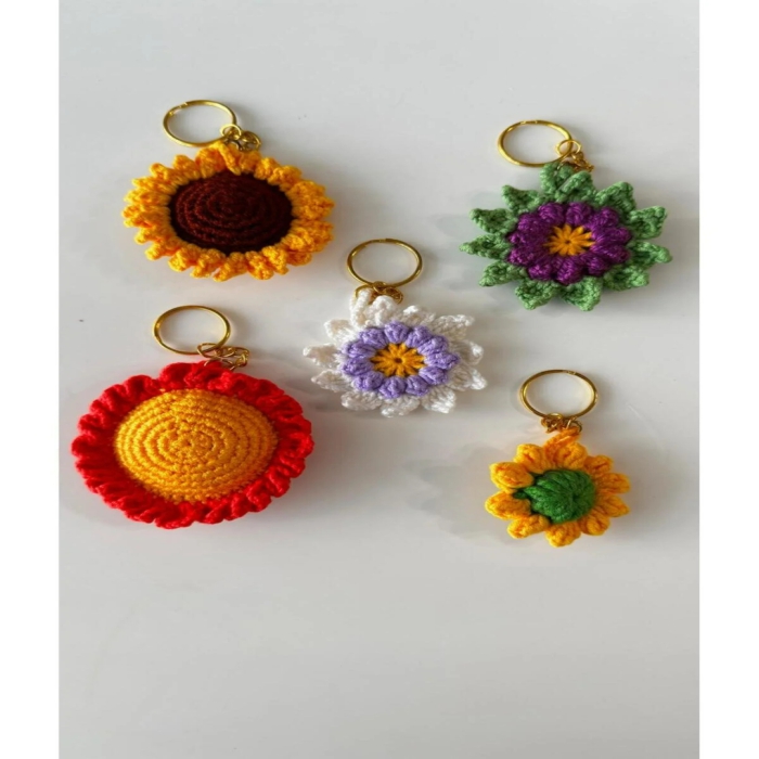 5 adet  El Örgüsü Ayçiçeği Tasarım anahtarlık seti,