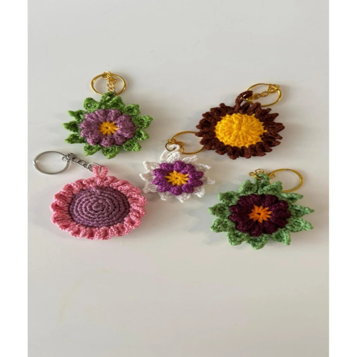 5 adet El Örgüsü Ayçiçeği Tasarım anahtarlık seti,