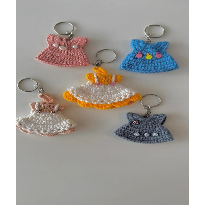 5 adet  El Örgüsü rengarenk Elbise tasarım anahtarlık seti,
