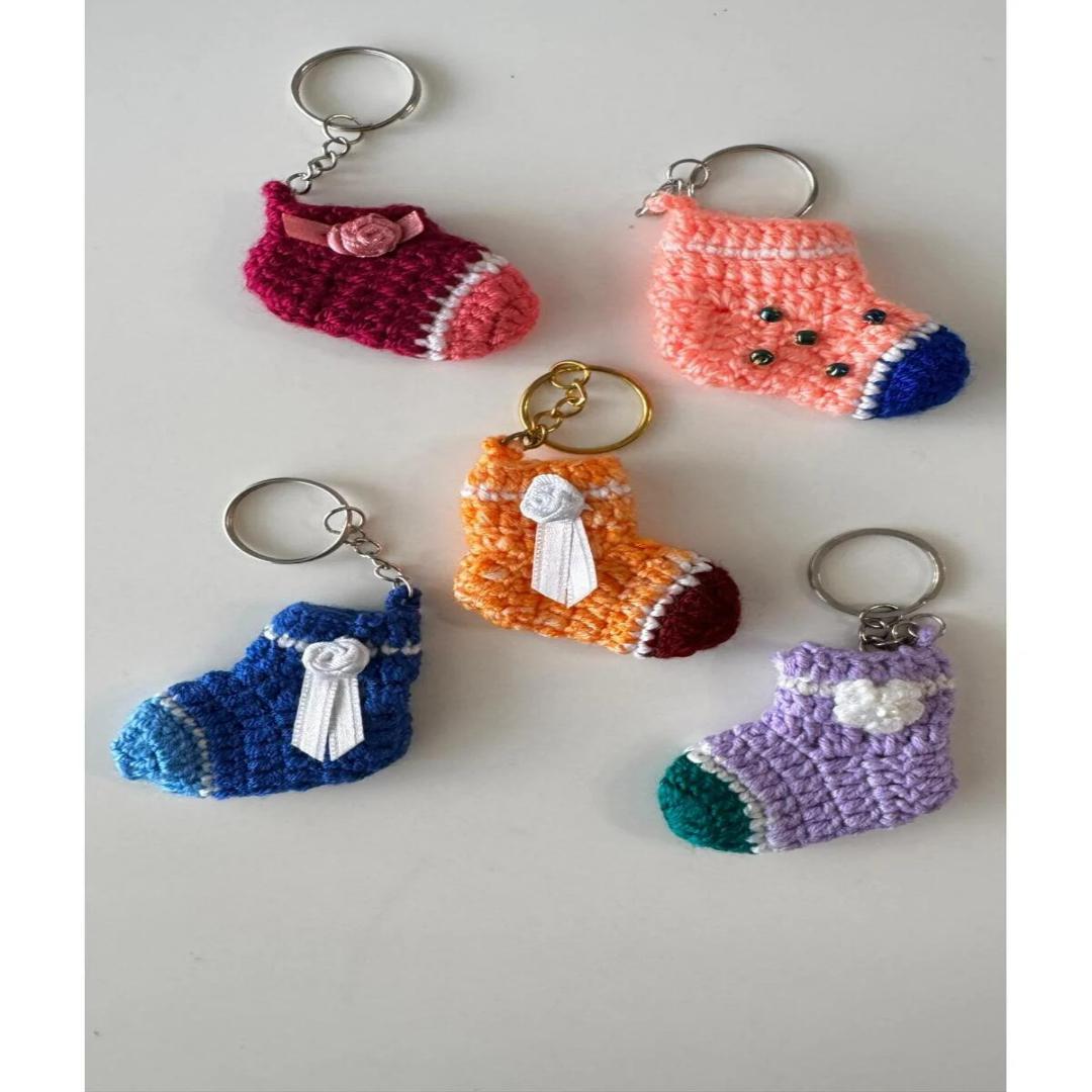 5 adet  El Örgüsü rengarenk Elbise tasarım anahtarlık seti,