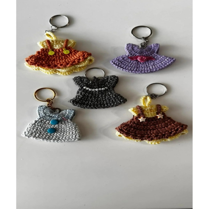 5 adet El Örgüsü rengarenk Elbise tasarım anahtarlık seti,