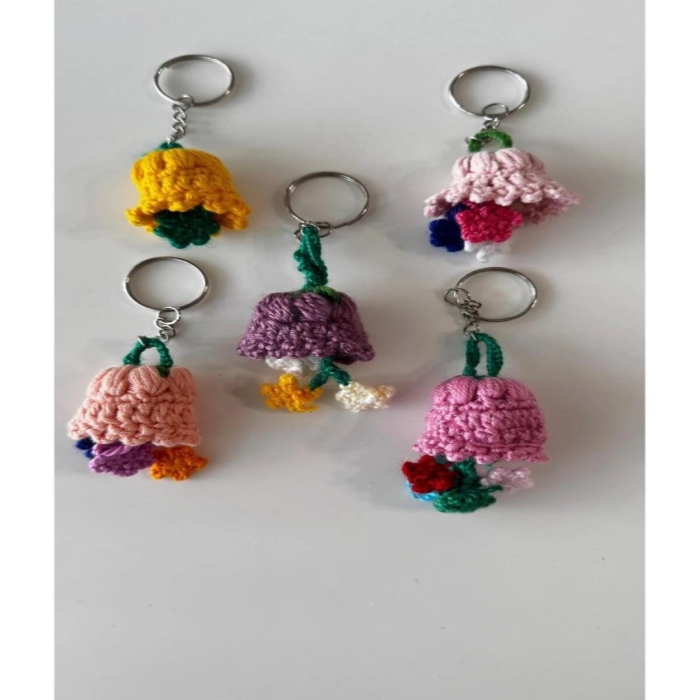 5 adet el örgüsü renkli çan anahtarlık seti...