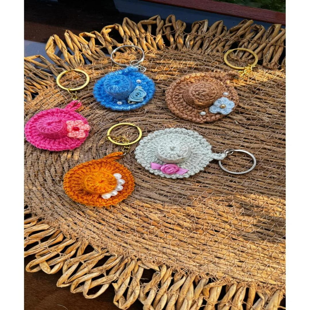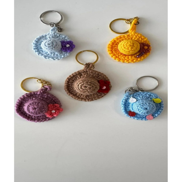 VİTVİT Anahtarlık 5 Adet El Örgüsü Renkli Şapka Anahtarlık Seti
