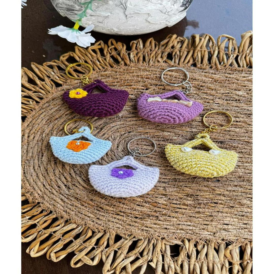 5 adet  El Örgüsü rengarenk sepet anahtarlık seti,