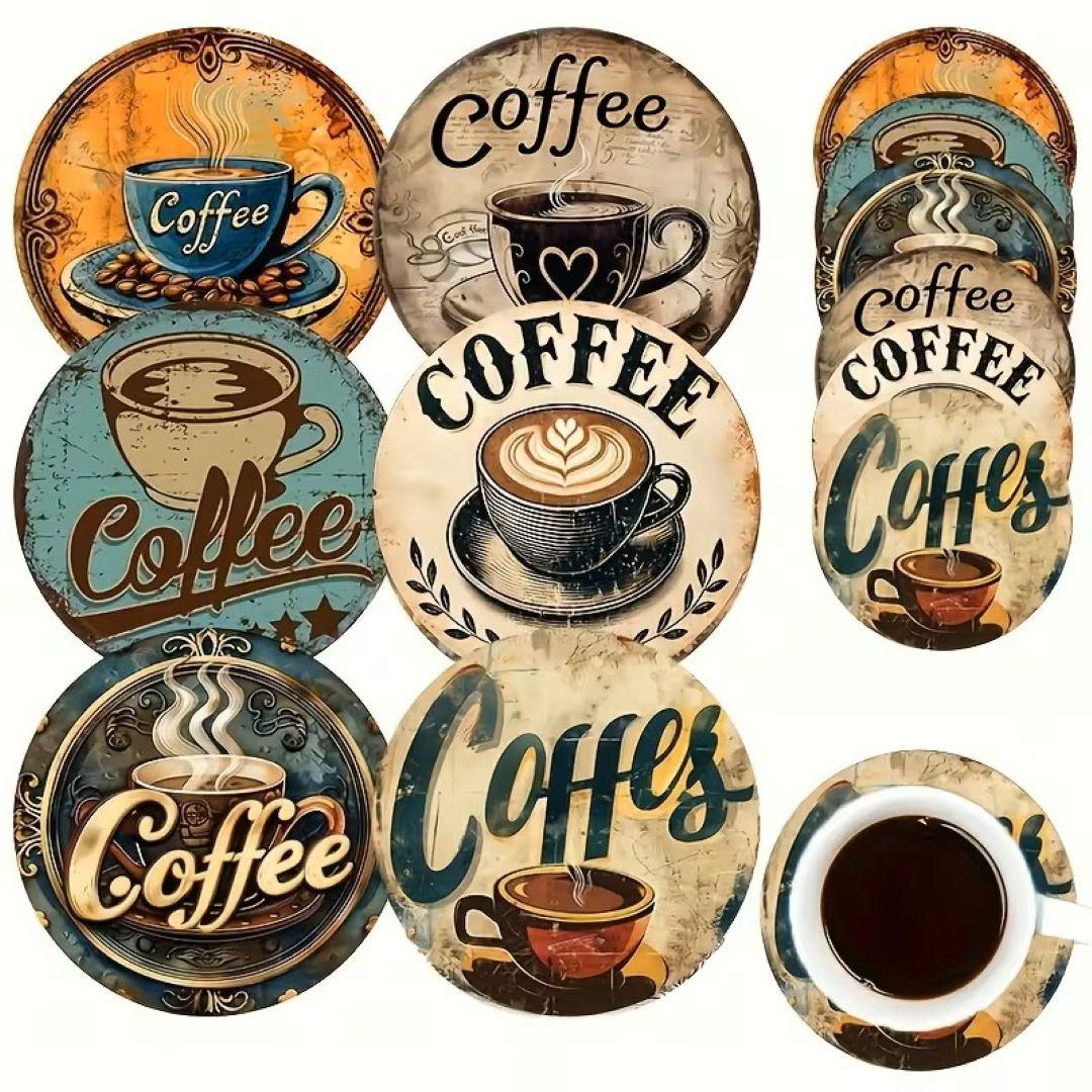 VİTVİT Bardak Altlığı 6 Parça Kahve Temalı Ahşap Bardak Altlığı Seti