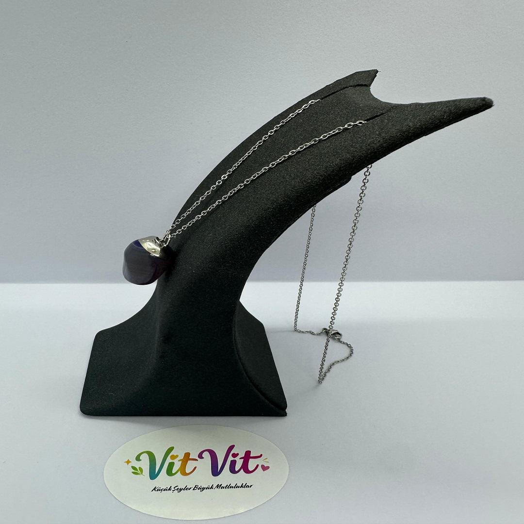 Mor tonuyla dikkat çeken bu kolye her yaştan kullanıcıya hitap ediyor.