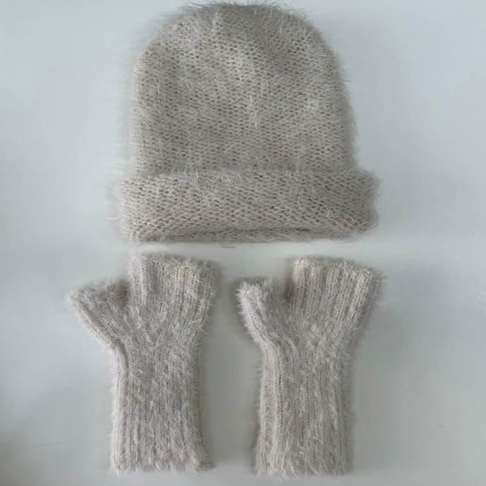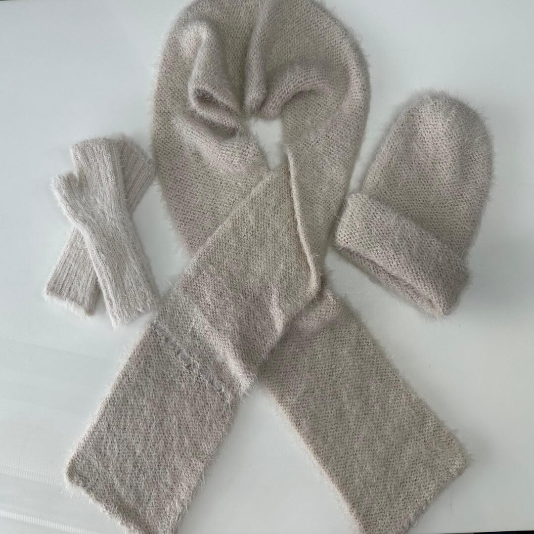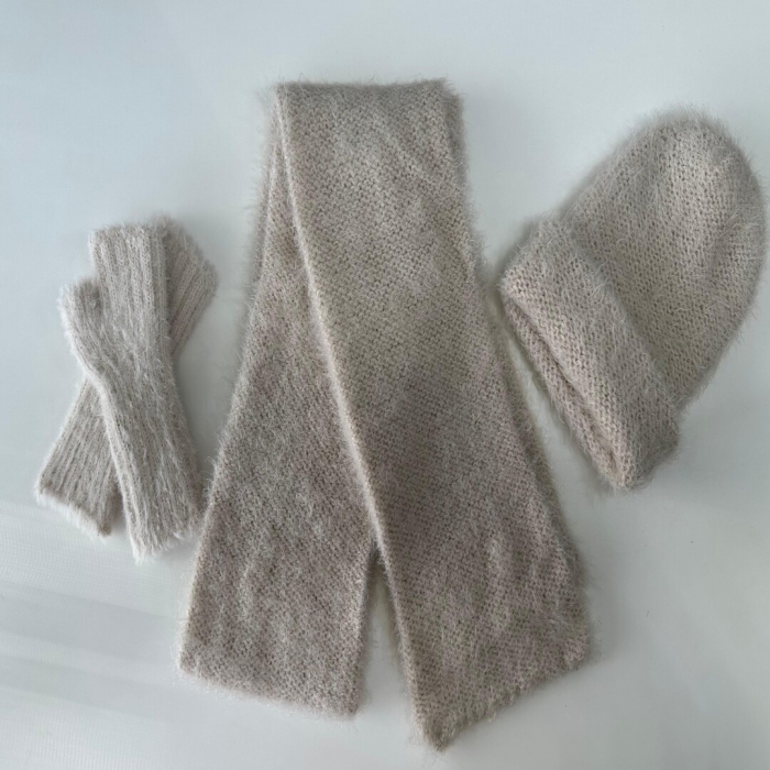 Yumuşak dokulu VİTVİT triko atkı, bere ve parmaksız eldiven takımı.