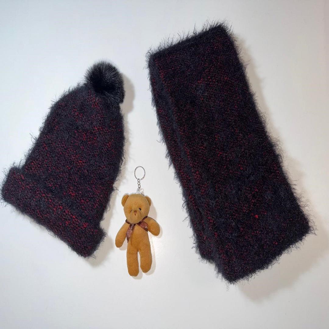 El Örgüsü Atkı & Bere Takımı ve Ayıcıklı Anahtarlıklı Hediye Seti