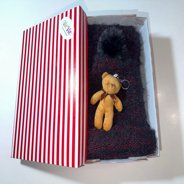 VİTVİT Atkı & Bere El Örgüsü Atkı & Bere Takımı ve Ayıcıklı Anahtarlıklı Hediye Seti