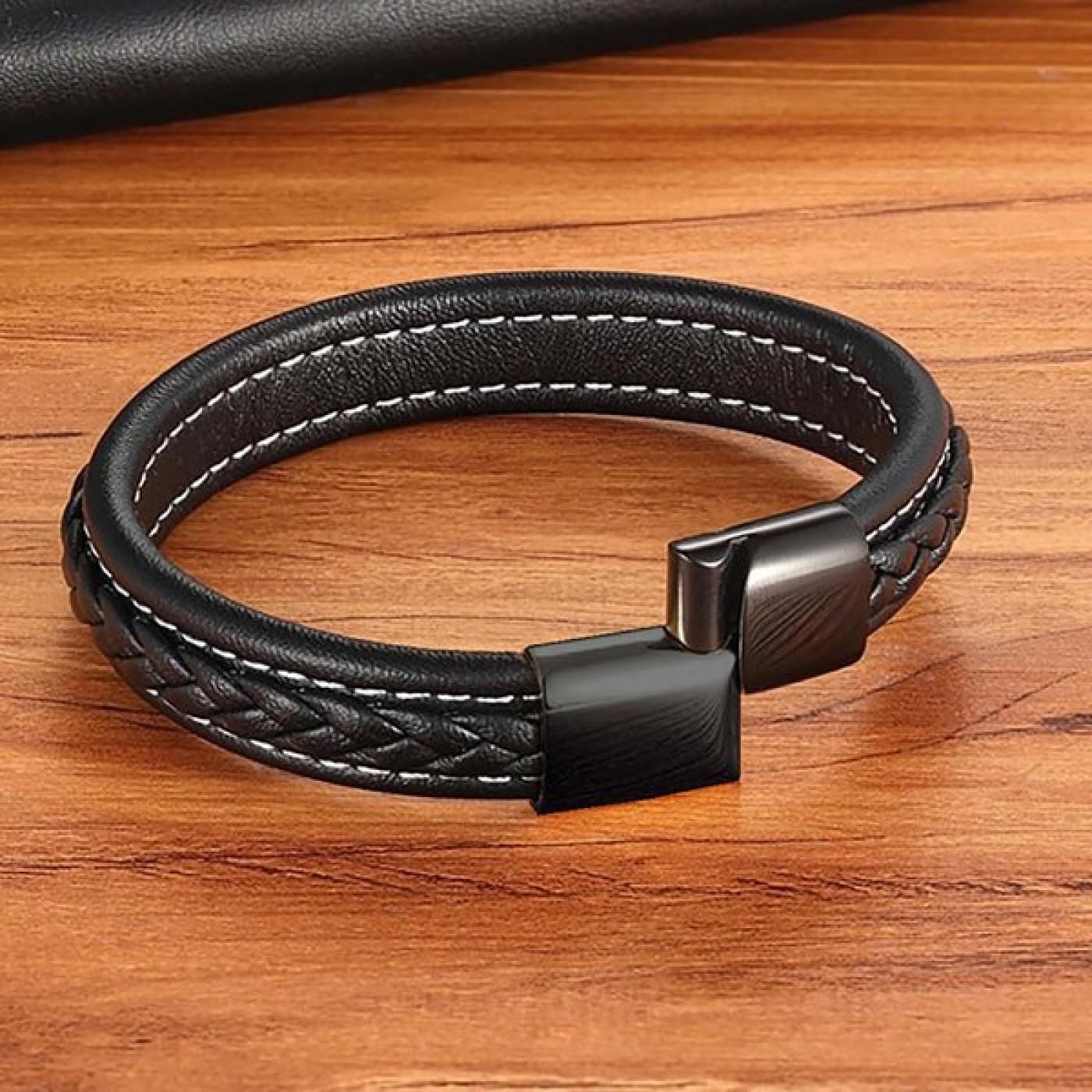 Karizmatik duruşu, sofistike tasarım dili ve güçlü detaylarıyla öne çıkan bu bileklik, her ortamda sizi ön plana çıkaracak ayrıcalıklı bir seçimdir.; Günlük kombinlerden özel davetlere kadar her yerde kullanılabilecek bu tasarım, modern erkeğin özgün stilini en güçlü şekilde yansıtır.; Siyah rengin asaletini taşıyan bu bileklik, otorite, güç ve gizemin sembolüdür.; Tarih boyunca koruyucu bir anlamla ilişkilendirilen siyah, bilgelik ve kararlılığı temsil etmiştir.; Bu nedenle bu bileklik, yalnızca şıklık değil, aynı zamanda spiritüel bir güç ve denge unsuru da sunar.; Kullanılan Malzemeler Ürün, yüksek kalite paslanmaz çelik ve özenle işlenmiş siyah deriyle üretilmiştir.; Paslanmaz çelik, sağlamlığı ve uzun ömürlü yapısıyla bilinir; kararma yapmaz, deforme olmaz ve her zaman ilk günkü parlaklığını korur.; Gücün ve dayanıklılığın simgesi olan çelik, bilekliğe modern ve maskülen bir karakter kazandırır.; Deri kısmında kullanılan saç örgü tekniği, ürüne hem görsel estetik hem de ustalık katar.; Siyah deri, tarih boyunca özgürlüğün ve gücün sembolü olmuştur; gizemli ve otoriter bir aura yaratarak maskülenliği ön plana çıkarır.; Örgü formunun kattığı hacim, bilekliğe daha güçlü bir görünüm kazandırır ve lüks algısını artırır.; Çelik detaylar, tasarımın modern ve sofistike yanını vurgular.; Dayanıklı yapısı sayesinde uzun yıllar kullanılabilecek bu aksesuar, şıklığıyla da her ortamda stilinizi öne çıkarır.; Bilekliğin üzerinde kullanılan figürler ve geometrik detaylar, tarih boyunca düzen, koruma ve güçle ilişkilendirilmiştir.; Böylece ürün, hem estetik hem de mistik anlamlarla zenginleşir.; Modern erkek stiline değer katan bu siyah saç örgülü deri ve çelik bileklik, hayat kalitenizi yükseltecek ayrıcalıklı bir aksesuardır.; Günlük kullanımda, iş hayatında ya da özel davetlerde kolaylıkla kombinlenebilen bu bileklik, maskülen duruşunuza sofistike bir dokunuş yapar.; Lüks algısını pekiştiren detayları sayesinde, fark yaratmak isteyen erkekler için ideal bir seçimdir.; Siyahın koruyucu enerjisi, derinin doğal gücü ve çeliğin sağlamlığı birleşerek bilekliğe hem görsel hem de spiritüel bir derinlik kazandırır.; Bu tasarım, yalnızca estetik bir parça değil; aynı zamanda içsel denge arayan erkekler için de güçlü bir sembol niteliği taşır.; Negatif enerjilere karşı koruyucu bir kalkan olarak görülen siyahın mistik anlamı, bilekliği ruhsal açıdan da değerli kılar.; Her detayı özenle hazırlanmış bu siyah saç örgülü deri ve çelik bileklik, maskülenliğin, gücün ve sofistike zarafetin modern bir yansımasıdır.; Dayanıklı malzemeleri ve zamansız tasarımı sayesinde uzun yıllar boyunca tarzınızı tamamlayacak olan bu özel aksesuar, karakterinizi güçlü bir şekilde yansıtır.; Günlük yaşamdan özel anlara kadar her ortamda şıklığınızı ve prestijinizi ön plana çıkaracak bu bileklik, modern erkek stilinin vazgeçilmez tamamlayıcısıdır.;